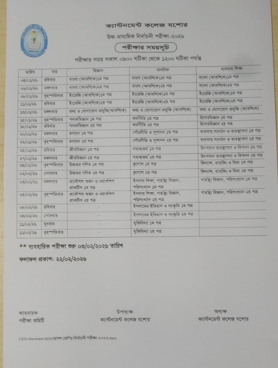 উচ্চ-মাধ্যমিক নির্বাচনী পরীক্ষা-২০২৬ পরীক্ষার রুটিন